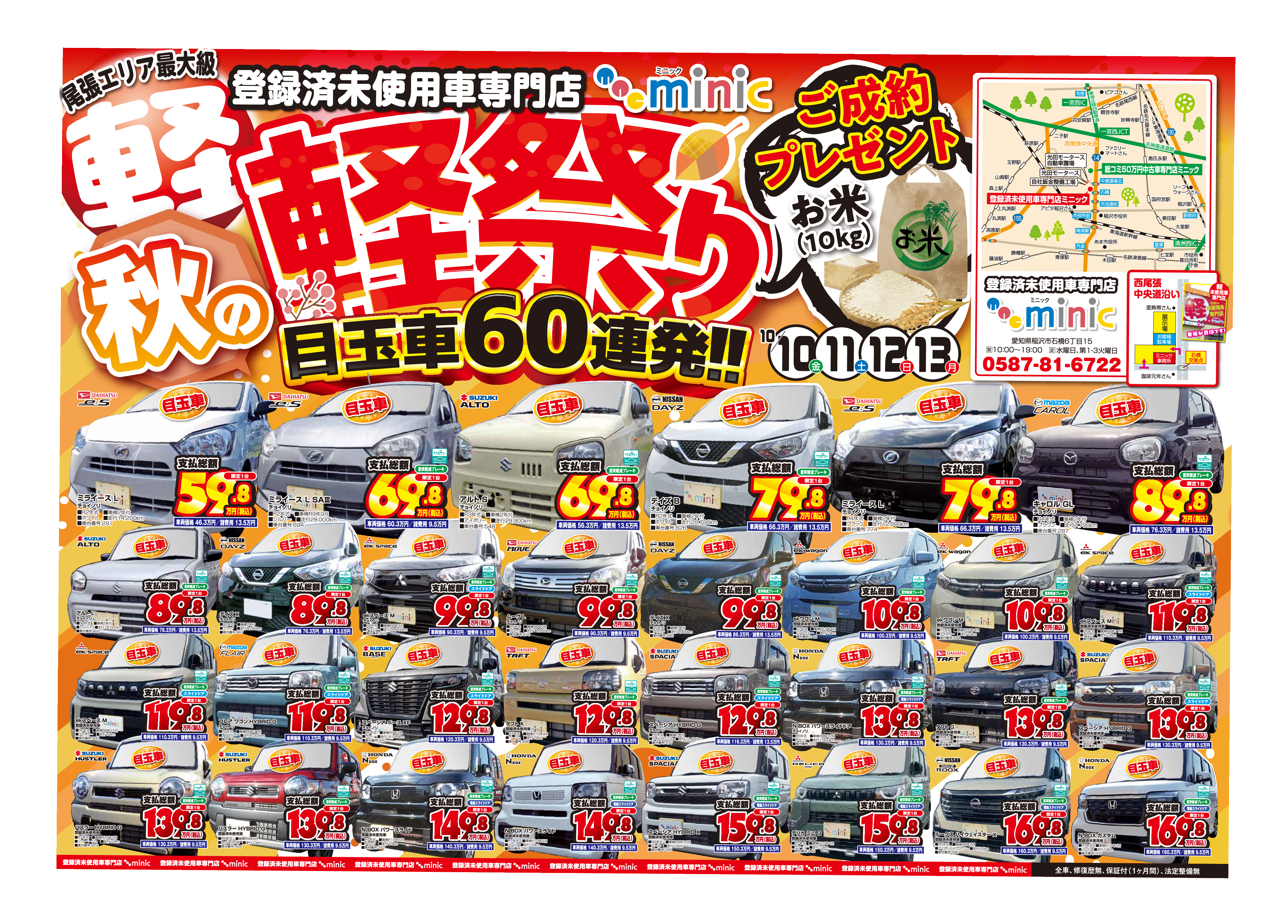 ミニックでは、一宮市・北名古屋市・岩倉市・羽島市エリアでもトップクラスの在庫を常時取り揃えています!