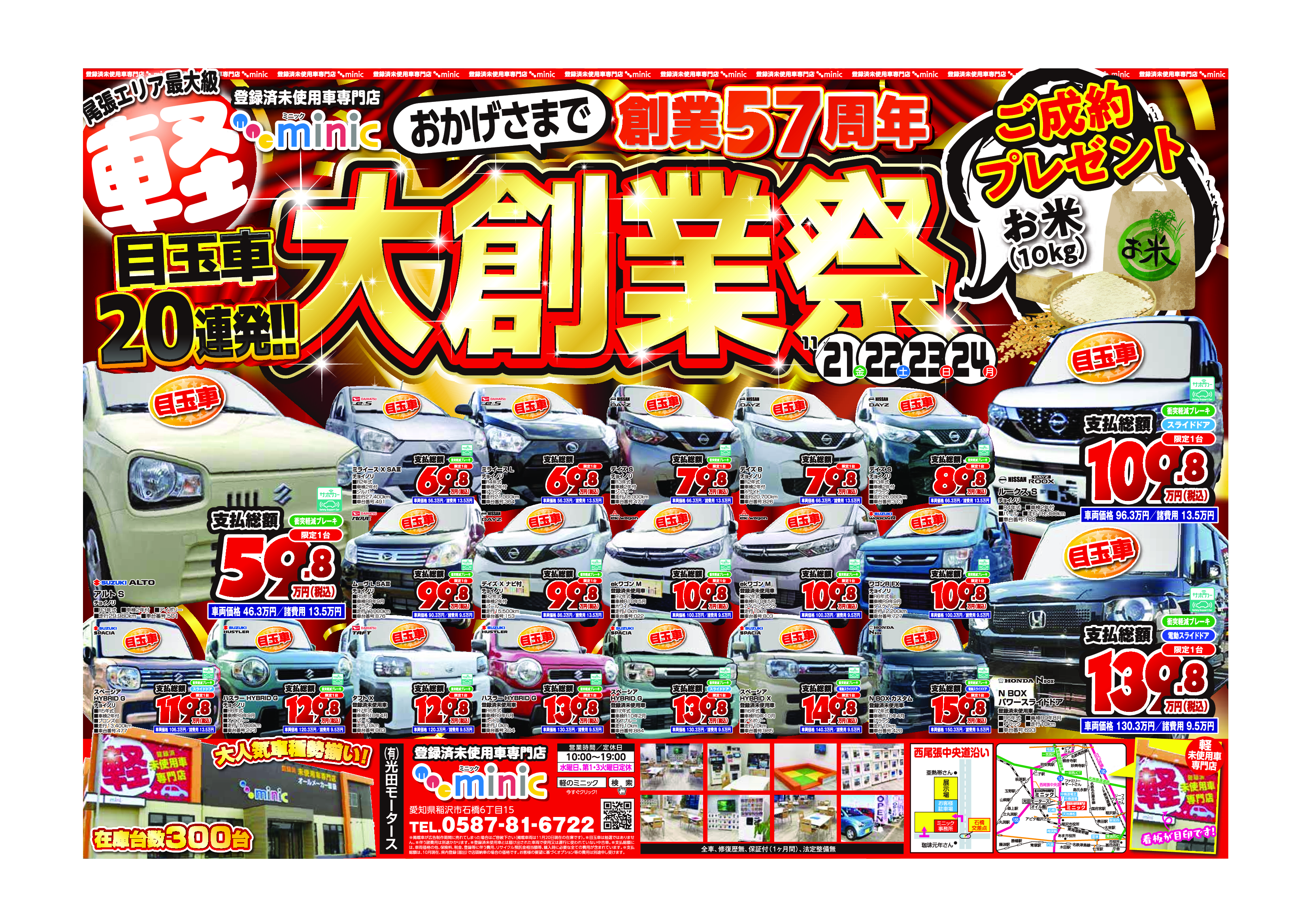 ミニックでは、一宮市・北名古屋市・岩倉市・羽島市エリアでもトップクラスの在庫を常時取り揃えています!