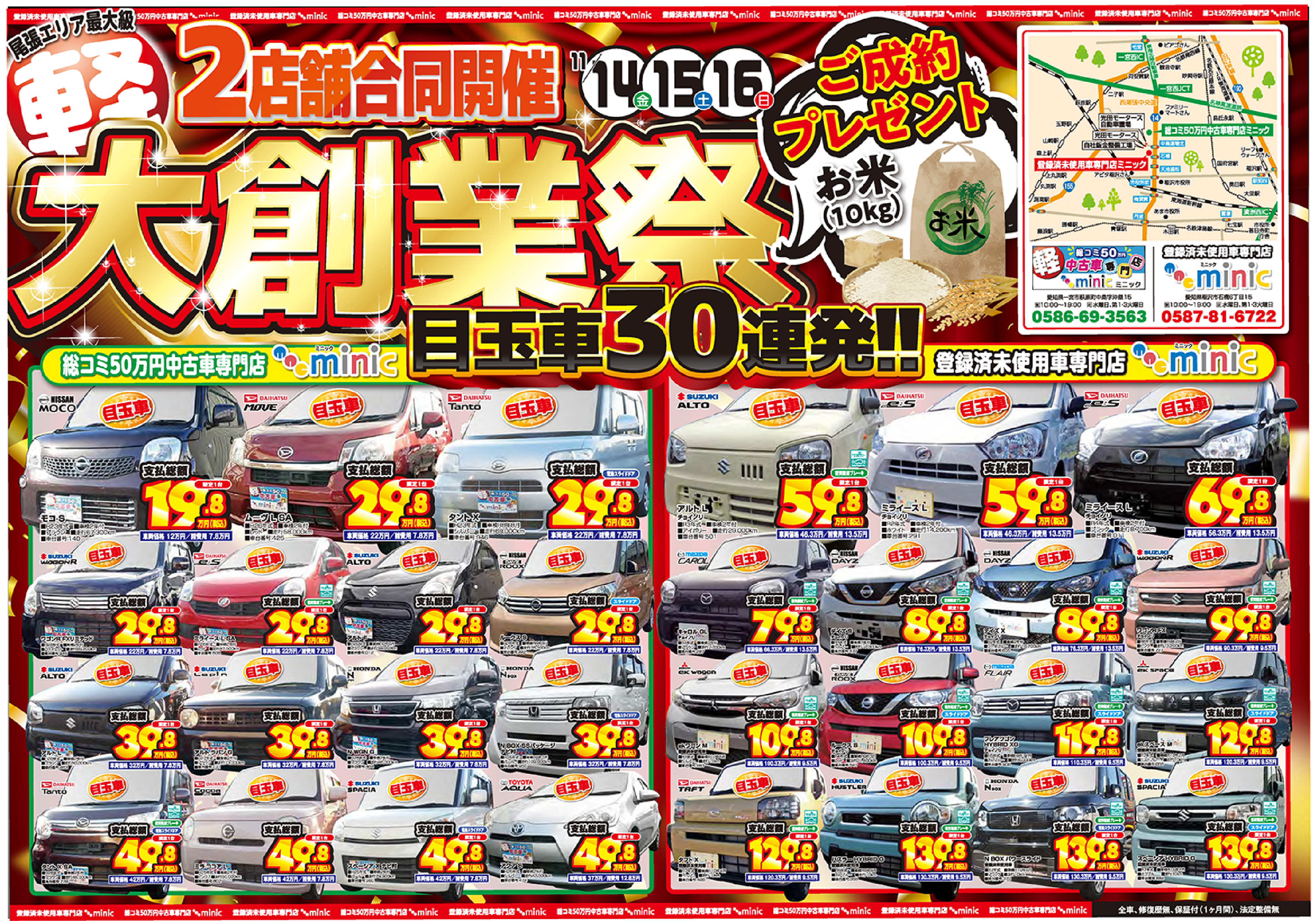 ミニックでは、一宮市・北名古屋市・岩倉市・羽島市エリアでもトップクラスの在庫を常時取り揃えています!